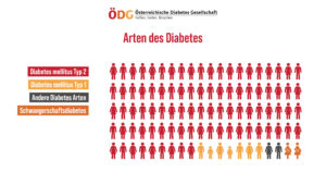 Univ. Prof.in Dr.in Susanne Kaser, Direktorin-Stv. der Universitätsklinik für Innere Medizin I der Medizinischen Universität Innsbruck und Präsidentin der ÖDG, erklärt: „In Österreich leben 800.000 Menschen mit Diabetes, also jede*r Zehnte ist von Diabetes betroffen. Die häufigste Form des Diabetes mit über 90 Prozent aller Diabeteserkrankungen ist der oft fälschlich als Alterszucker bezeichnete Diabetes mellitus Typ 2. Dazu kommen noch 350.000 mit der Vorstufe, dem Prädiabetes. Insgesamt leiden mehr als 1,1 Millionen Menschen an einer Zuckerstoffwechselstörung.“