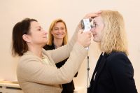 OÄ Dr Cornelia Hirn, FEBO, Abteilung für Augenkrankheiten mit Augen- Tagesklinik am Hanusch-Krankenhaus der ÖGK in Wien, misst den Augendruck einer Patientin